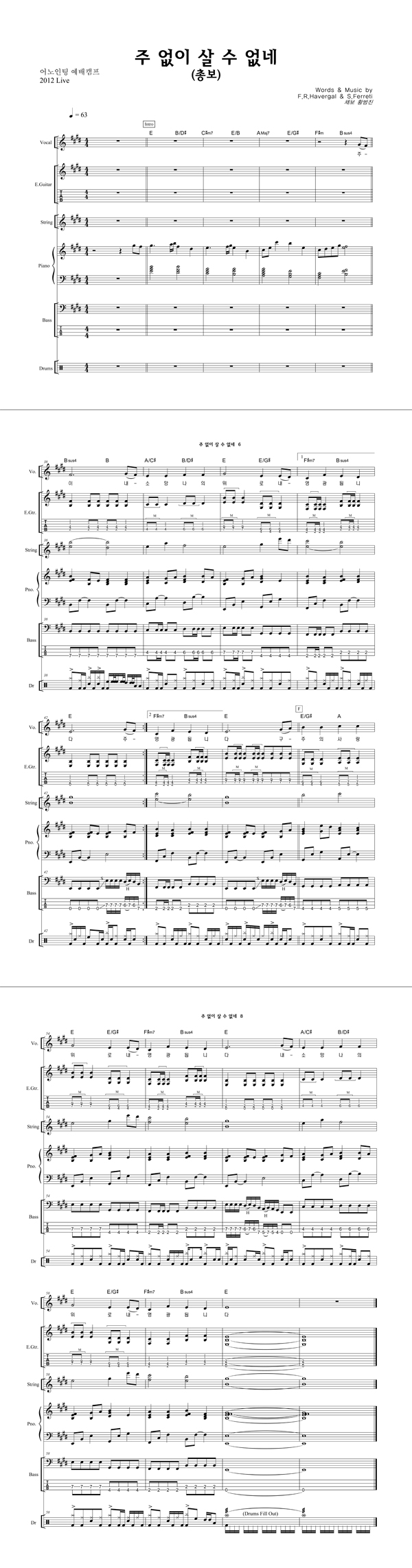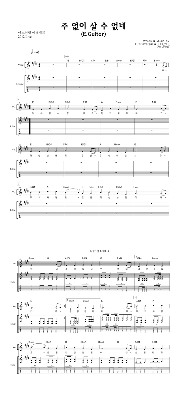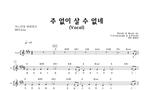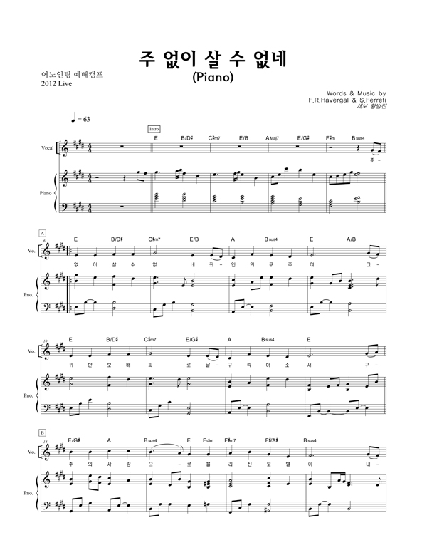 | 주 없이 살 수 없네 | 성가 2부 + 피아노 반주 |