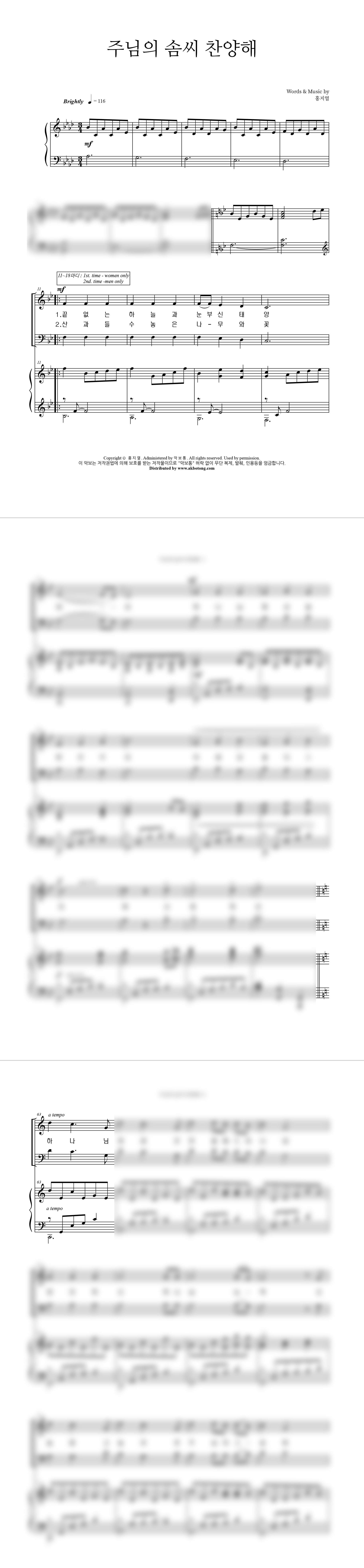 '주님의 솜씨 찬양해' 의 다른 악보형식