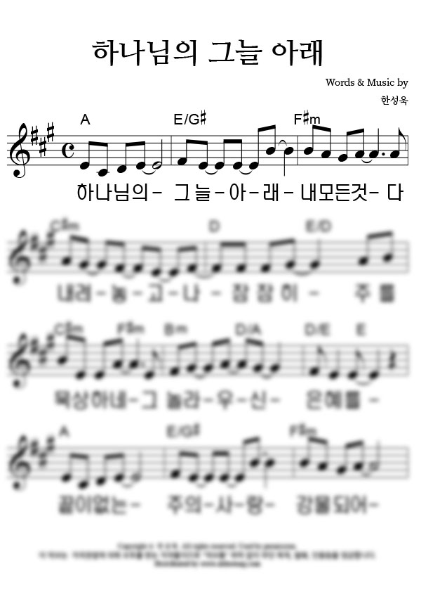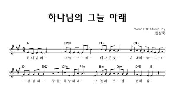 | 하나님의 그늘 아래 | 성가 4부 + 피아노 반주 |