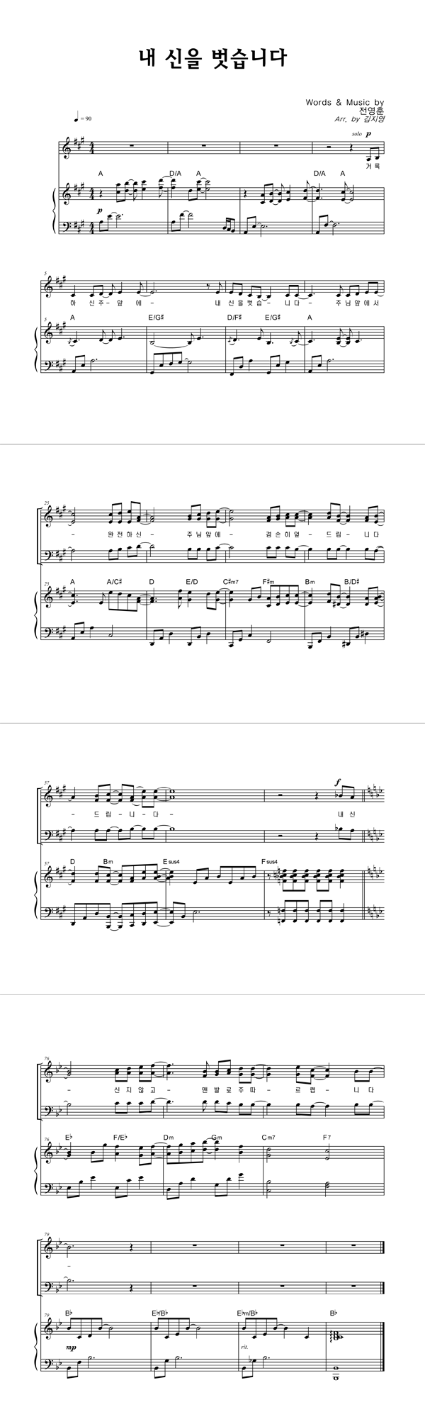 | 내 신을 벗습니다 큰글씨 | 성가 4부 + 피아노 반주 |