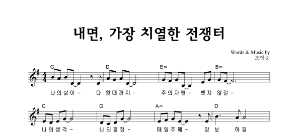 | 내면,가장 치열한 전쟁터 | 성가 4부 + 피아노 반주 |