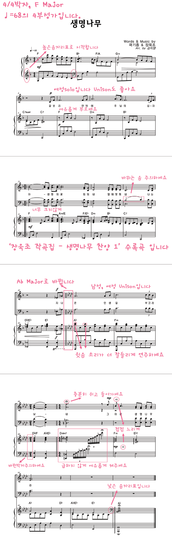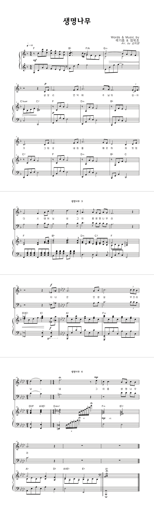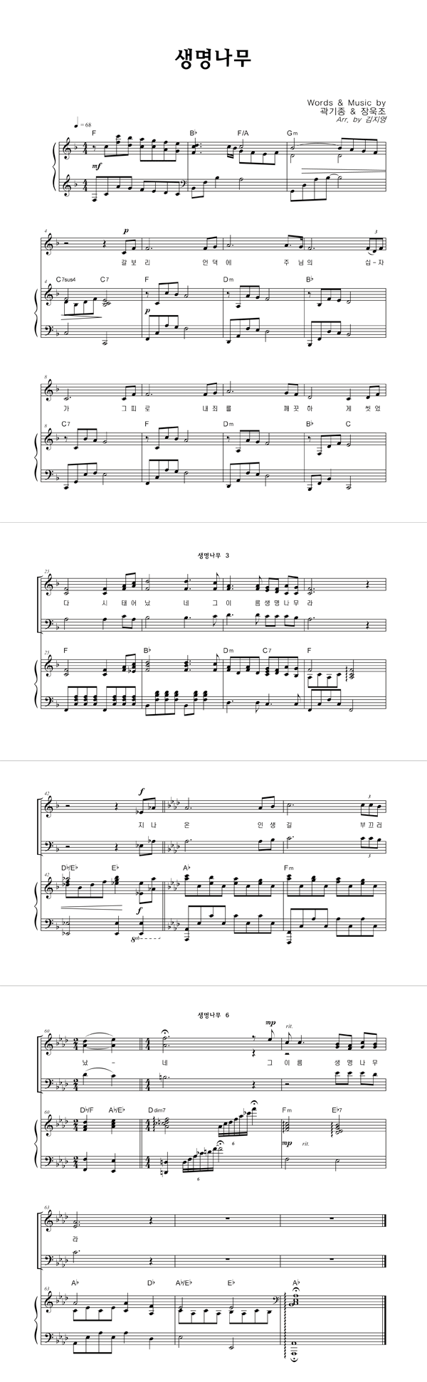| 생명나무 | 성가 3부 + 피아노 반주 |
