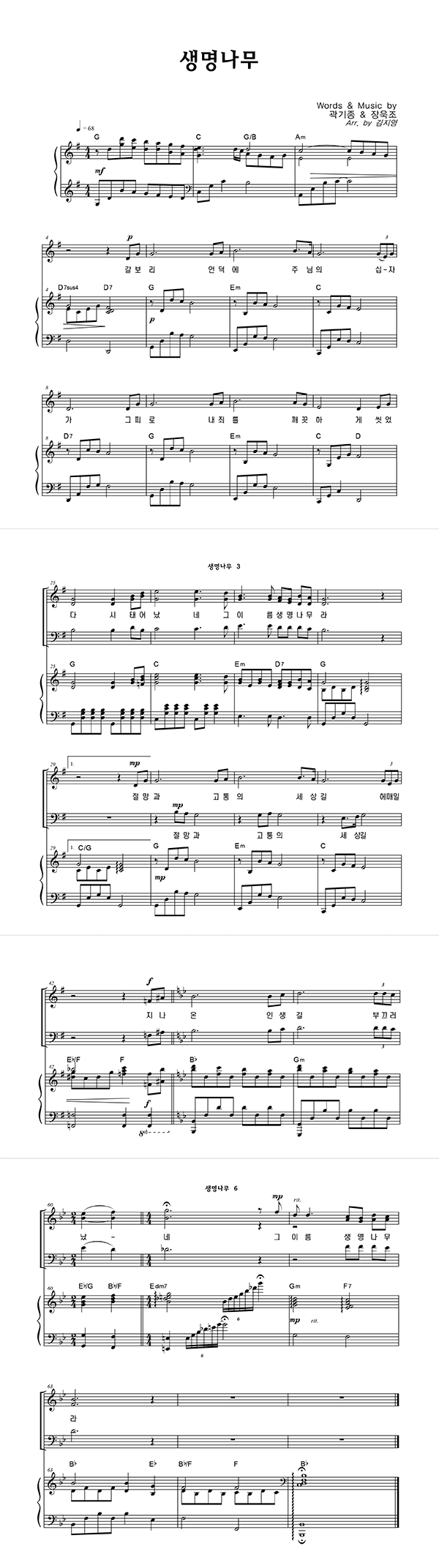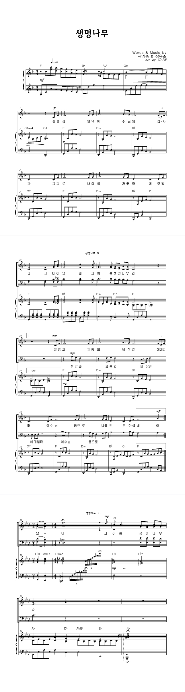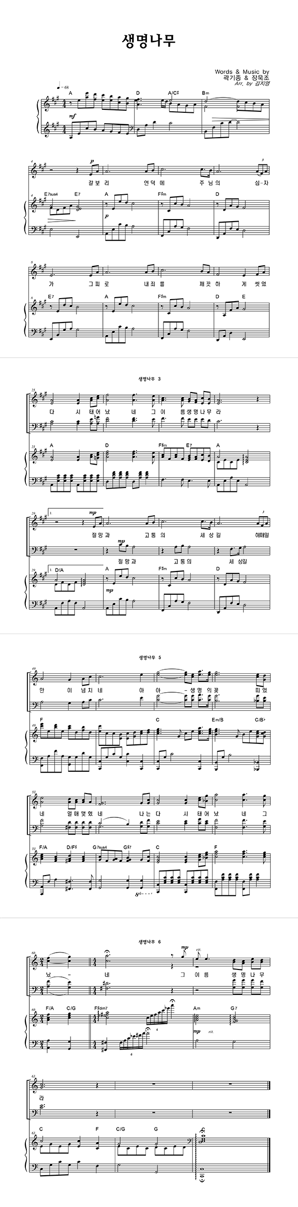 | 생명나무 | 성가 2부 + 피아노 반주 |