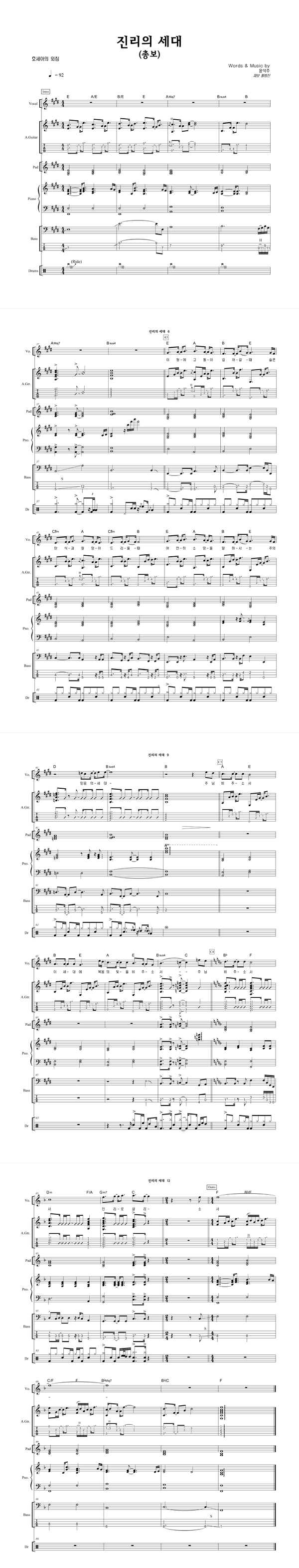 '진리의 세대' 의 다른 악보형식