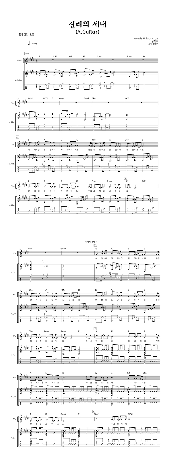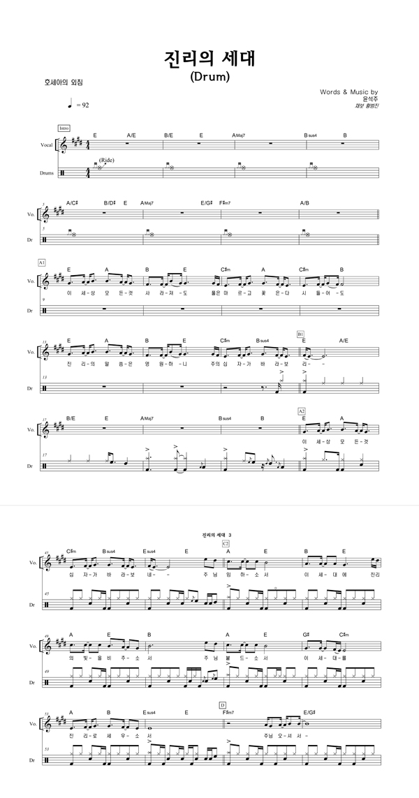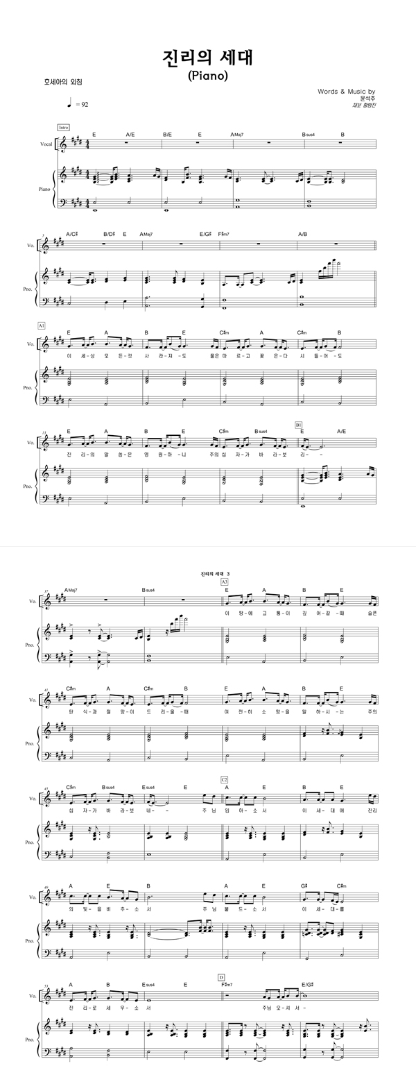 | 호세아 | 성가 2부 + 피아노 반주 |