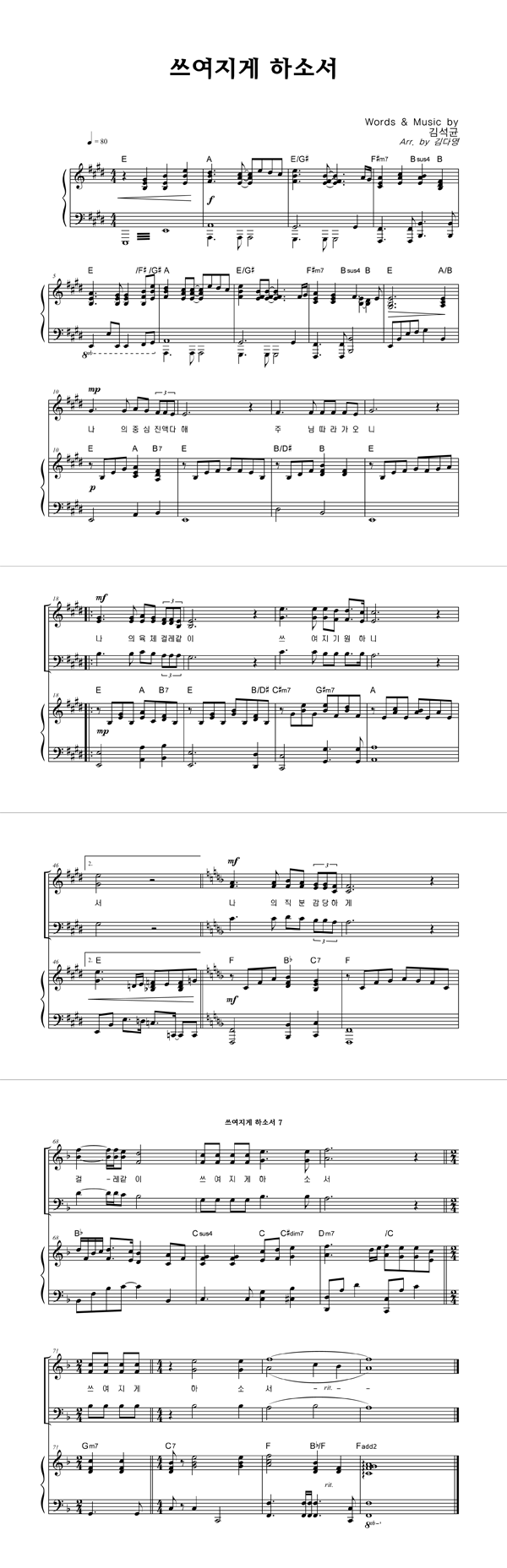 | 쓰여지게 하소서 | 성가 2부 + 피아노 반주 |