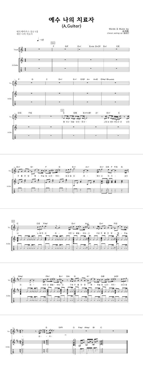 | 예수 나의 치료자 | 성가 3부 + 피아노 반주 |