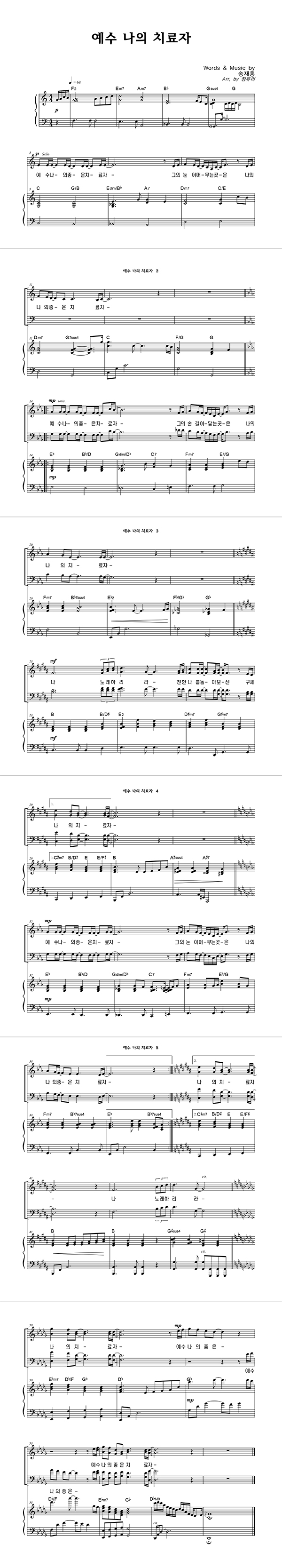 '예수 나의 치료자' 의 다른 악보형식