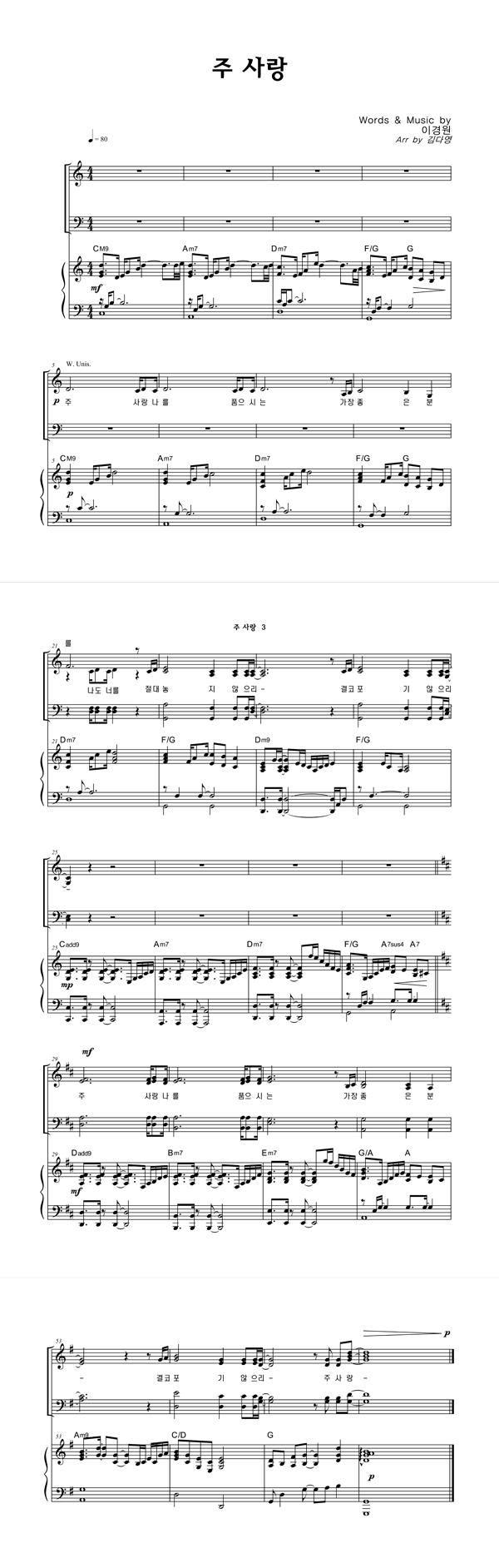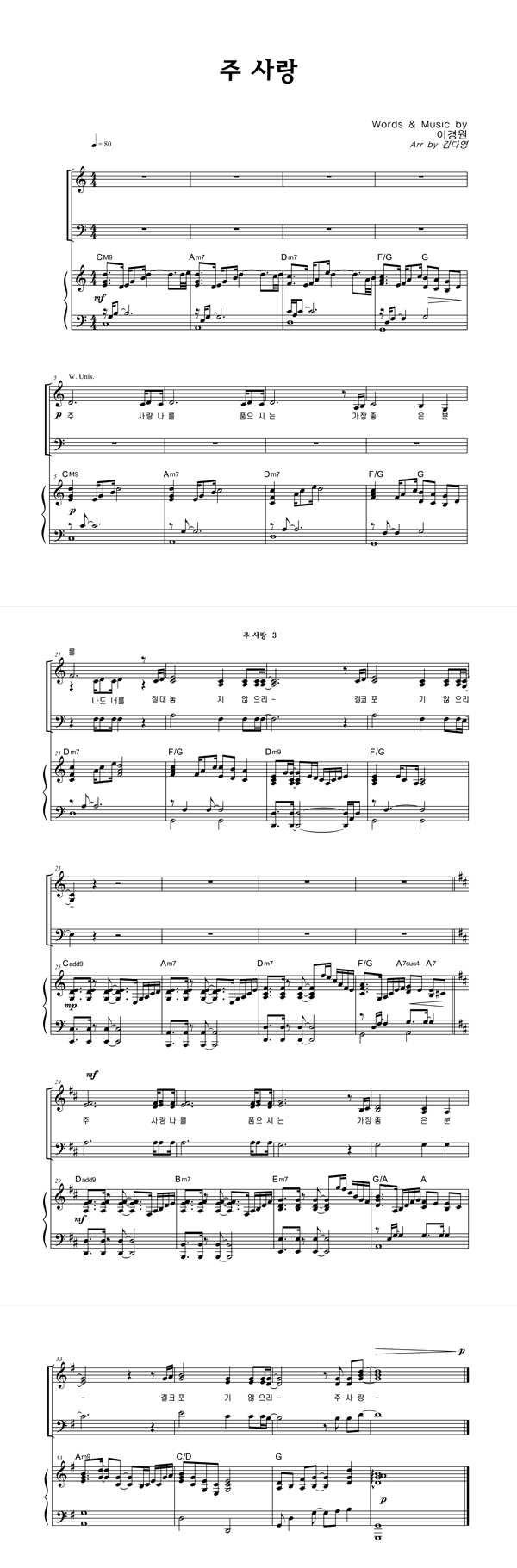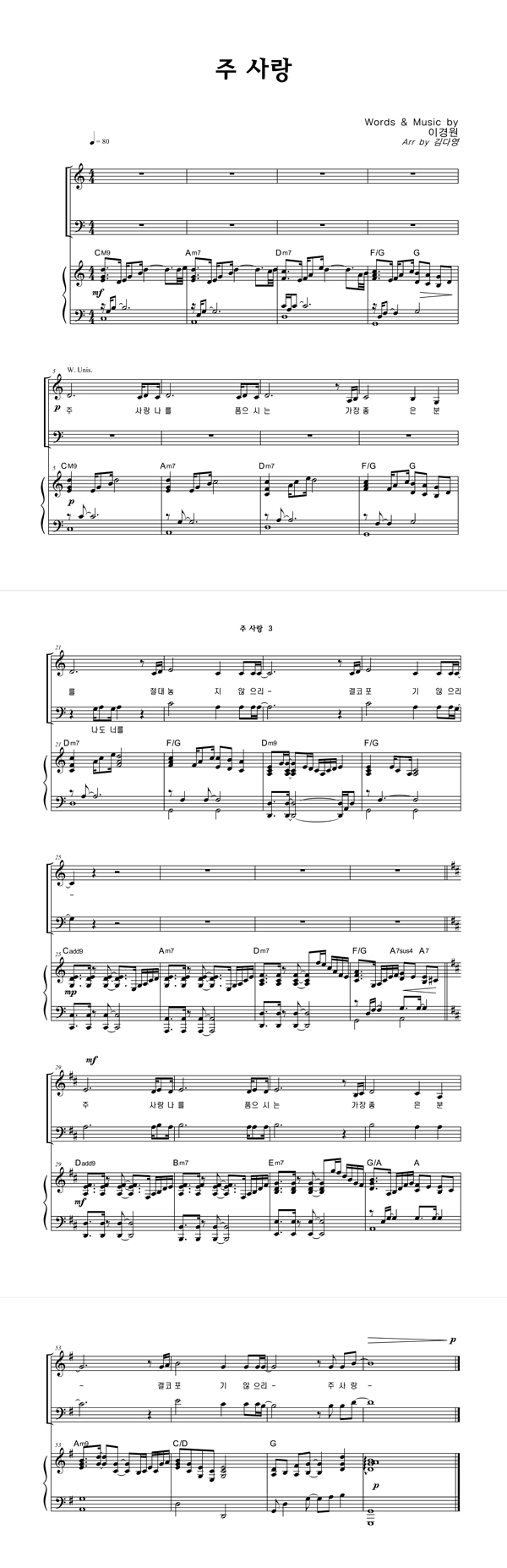 | 주 사랑 | 성가 3부 + 피아노 반주 |