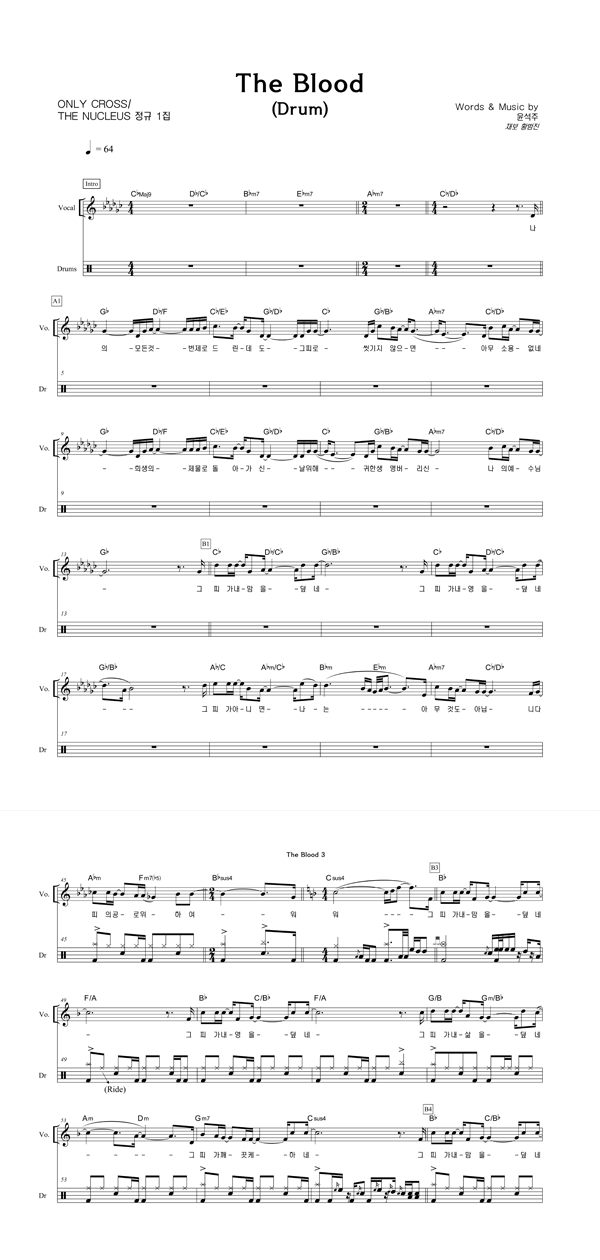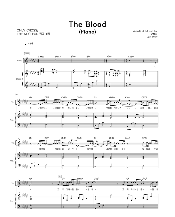 | The Blood 큰글씨 | 성가 4부 + 피아노 반주 |