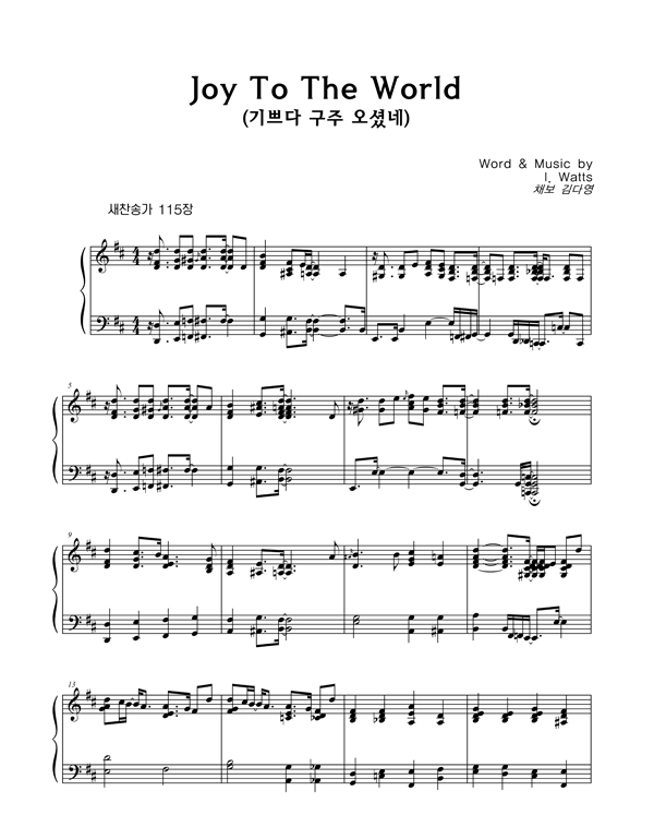 | 기쁘다 구주 오셨네 (찬송가 115장) | 성가 2부 + 피아노 반주 |