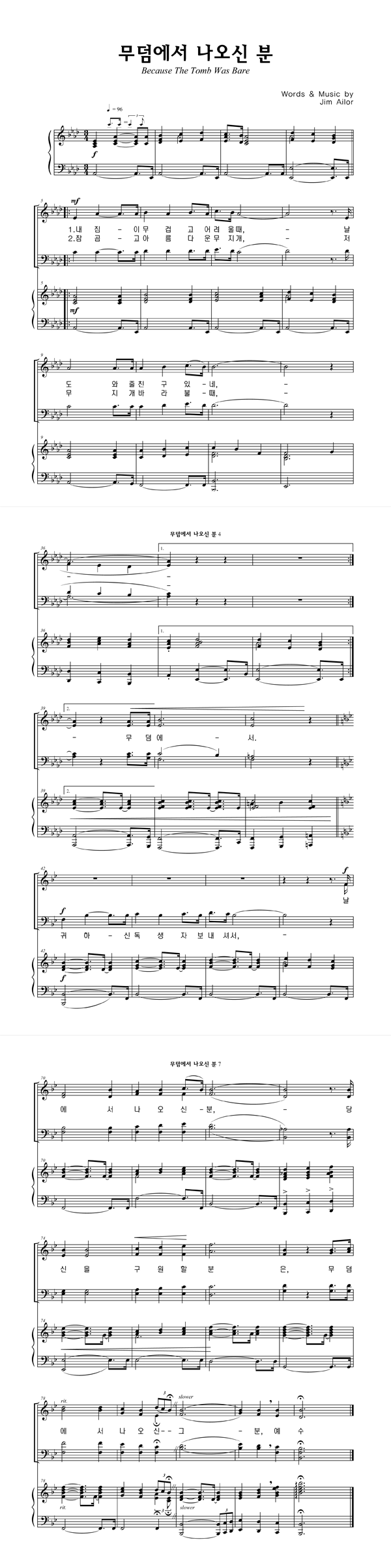 '무덤에서 나오신 분' 의 다른 악보형식