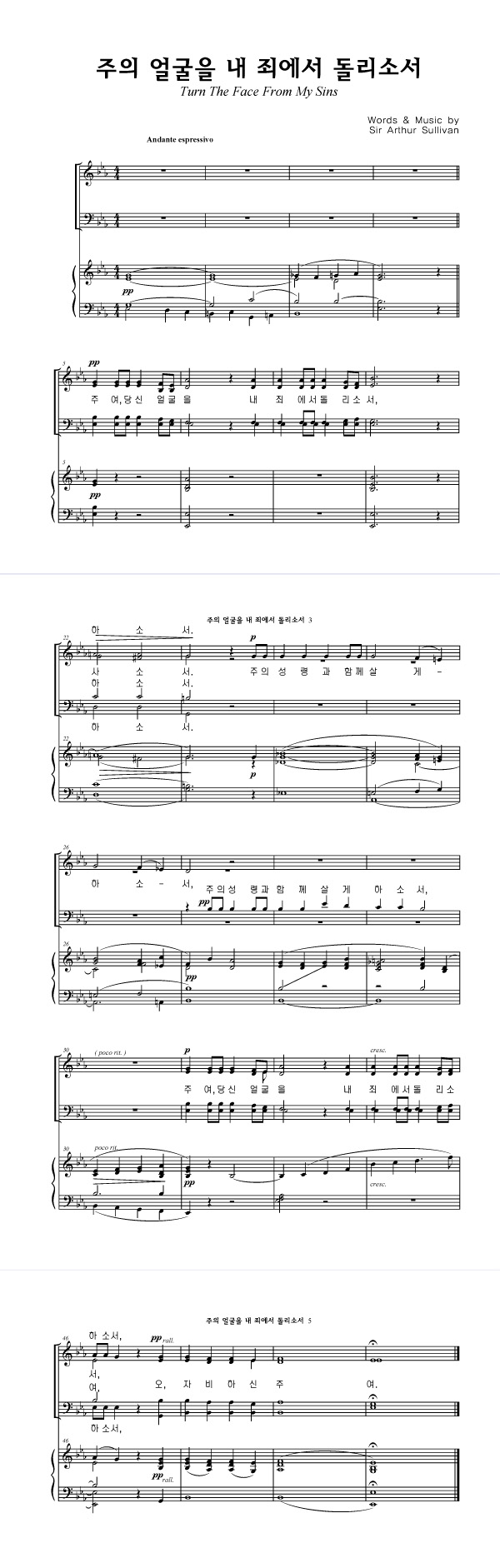 '주의 얼굴을 내 죄에서 돌리소서' 의 다른 악보형식