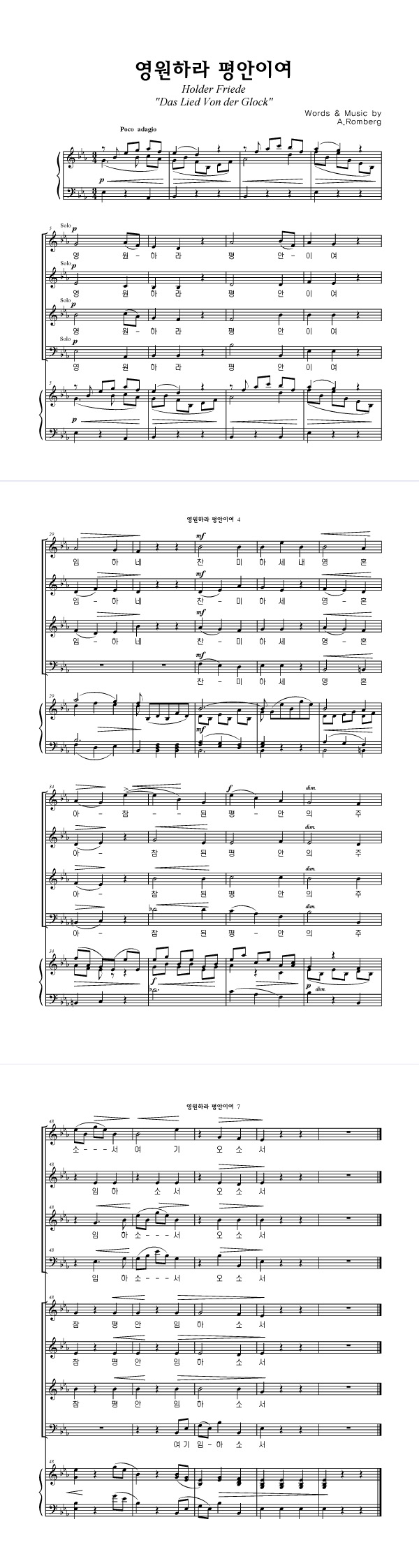 '영원하라 평안이여' 의 다른 악보형식