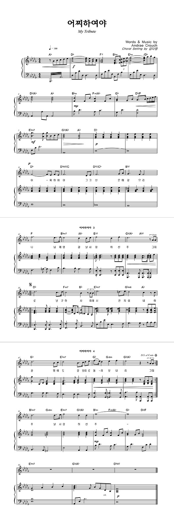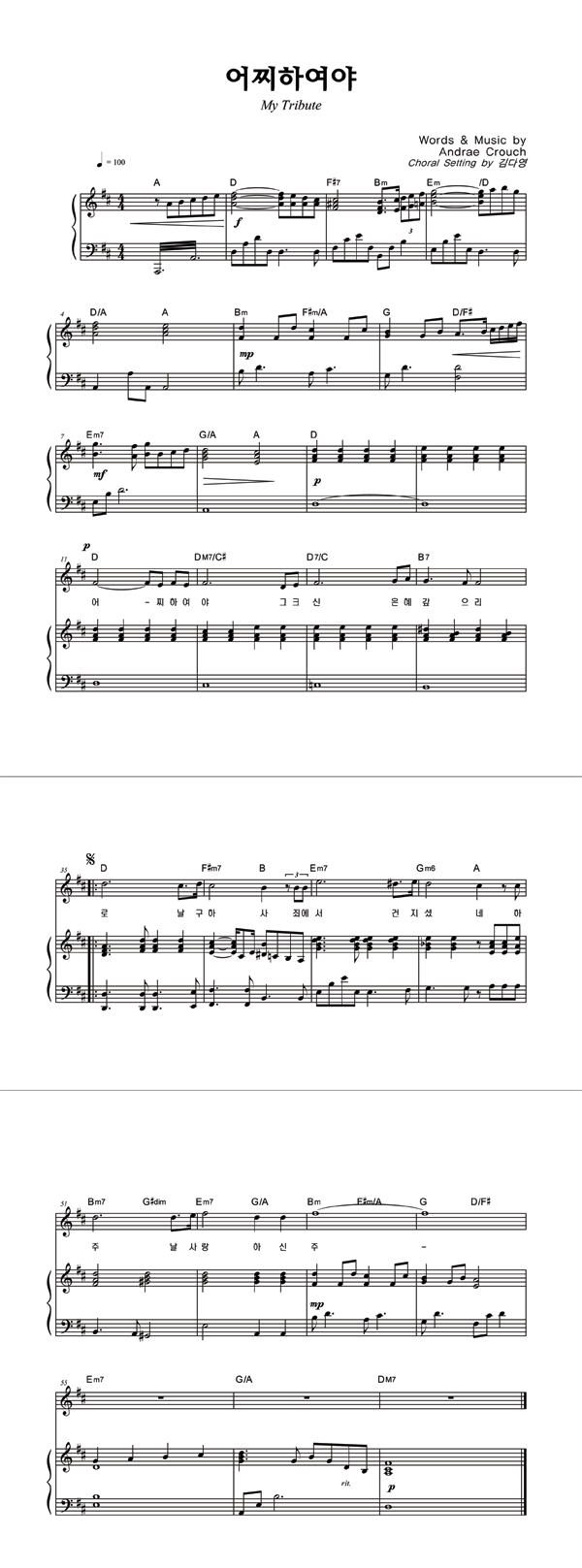 | 내가 너를 사랑함이라 | 성가 2부 + 피아노 반주 |