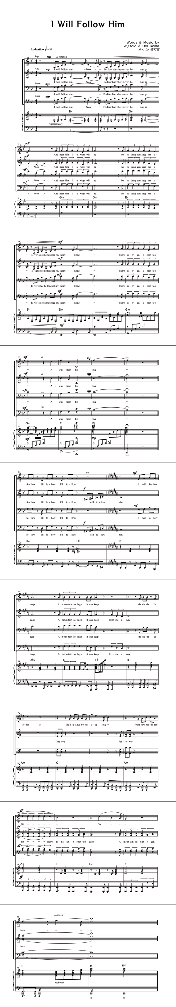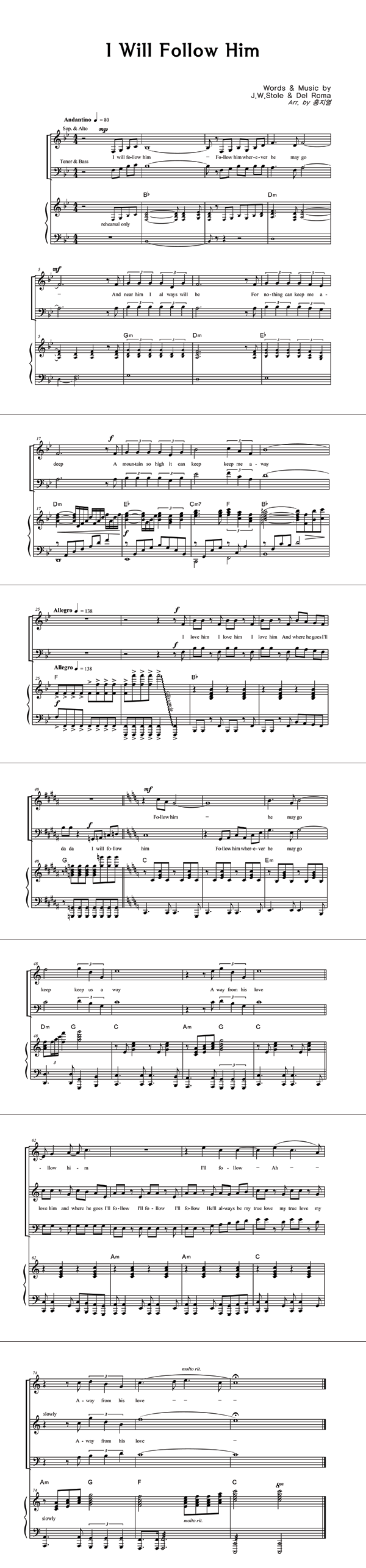 | I Will Follow Him | 성가 4부 + 피아노 반주 |