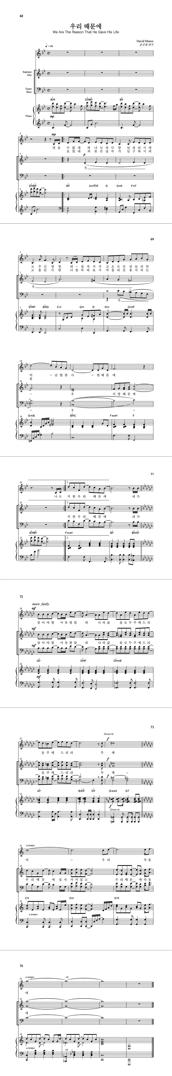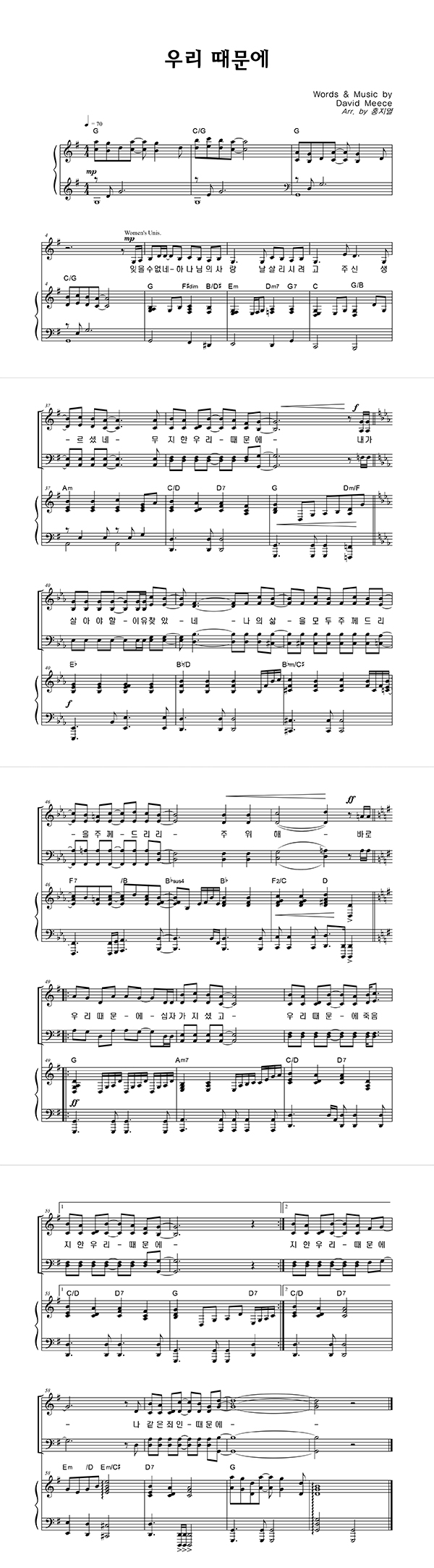 | 우리 때문에 | 성가 2부 + 피아노 반주 |