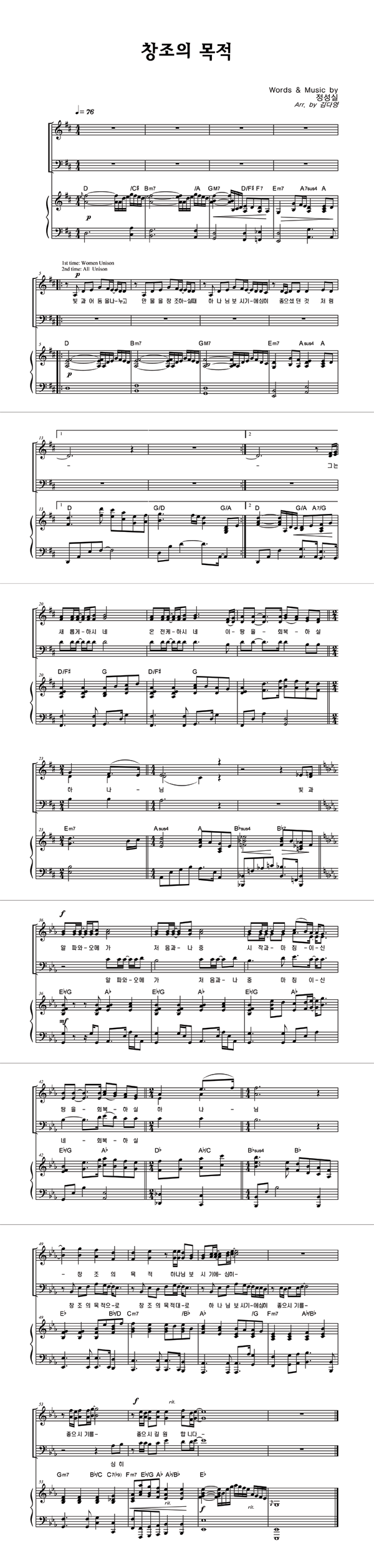 | 창조의 목적 | 성가 2부 + 피아노 반주 |