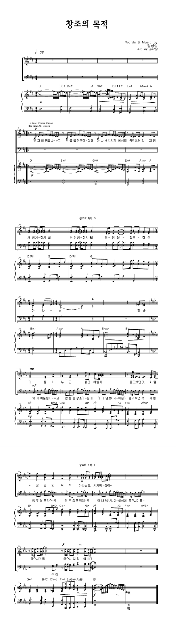 | 창조의 목적 | 성가 3부 + 피아노 반주 |