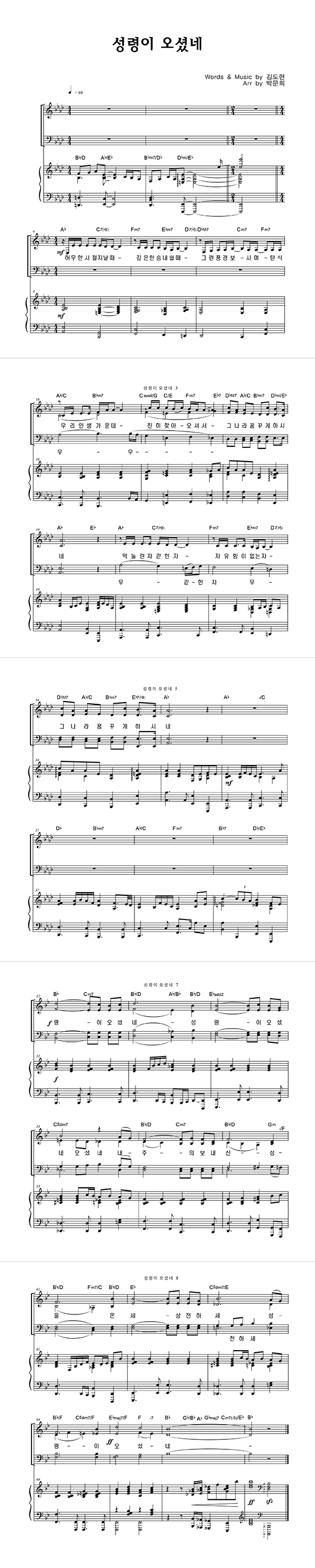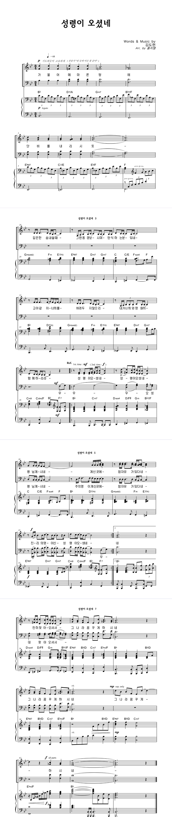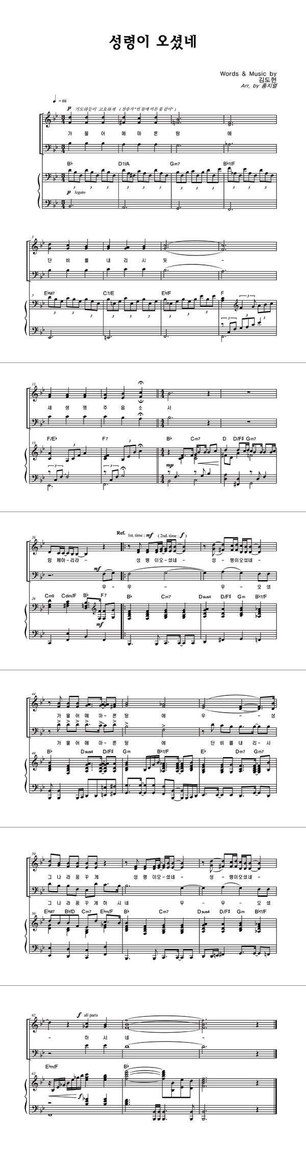 | 성령이 오셨네 | 성가 3부 + 피아노 반주 |