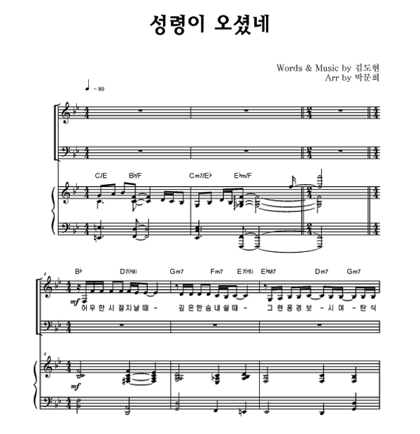 | 성령이 오셨네 | 성가 2부 + 피아노 반주 |