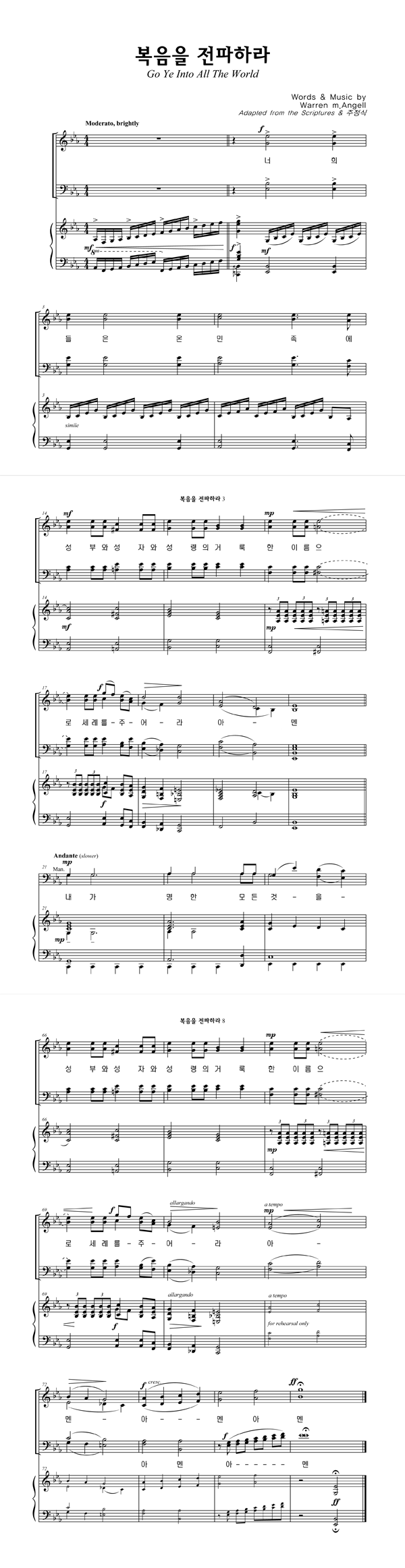 '복음을 전파하라' 의 다른 악보형식