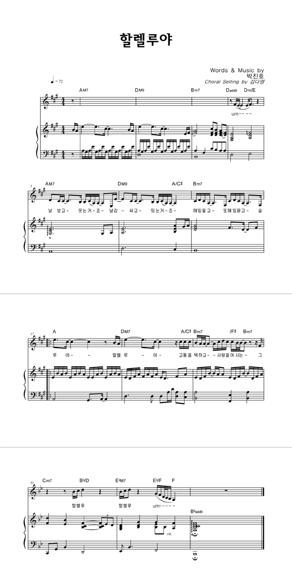 | 할렐루야 | 성가 3부 + 피아노 반주 |