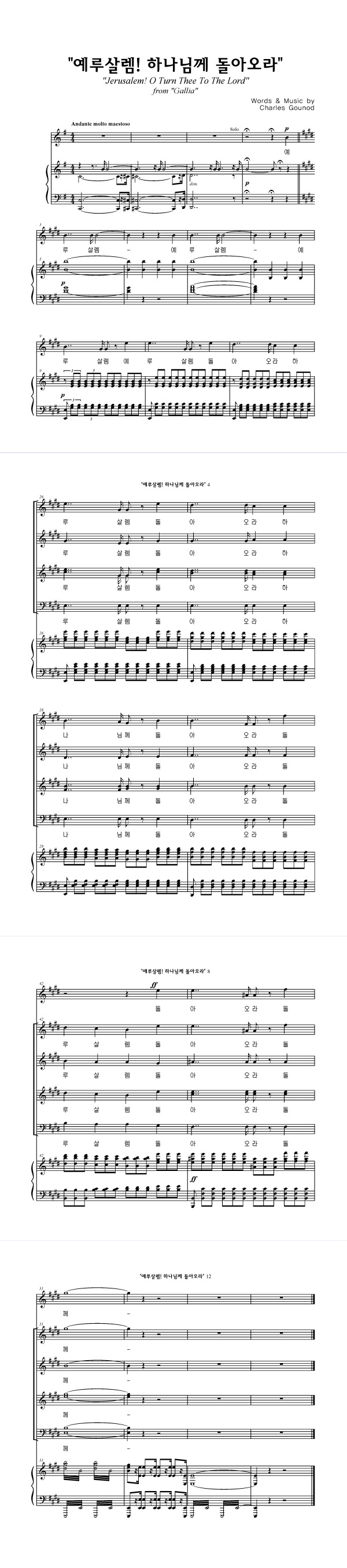 '예루살렘! 하나님께 돌아오라' 의 다른 악보형식