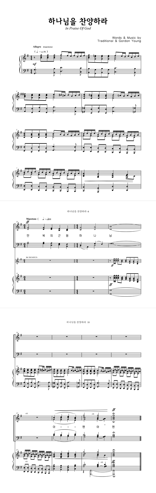 '하나님을 찬양하라' 의 다른 악보형식