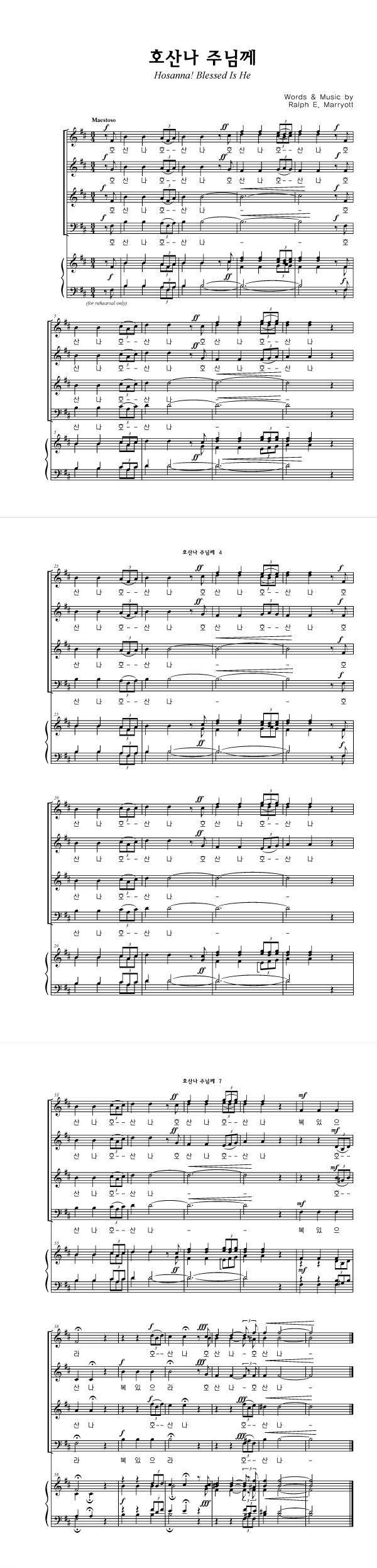 '호산나 주님께' 의 다른 악보형식