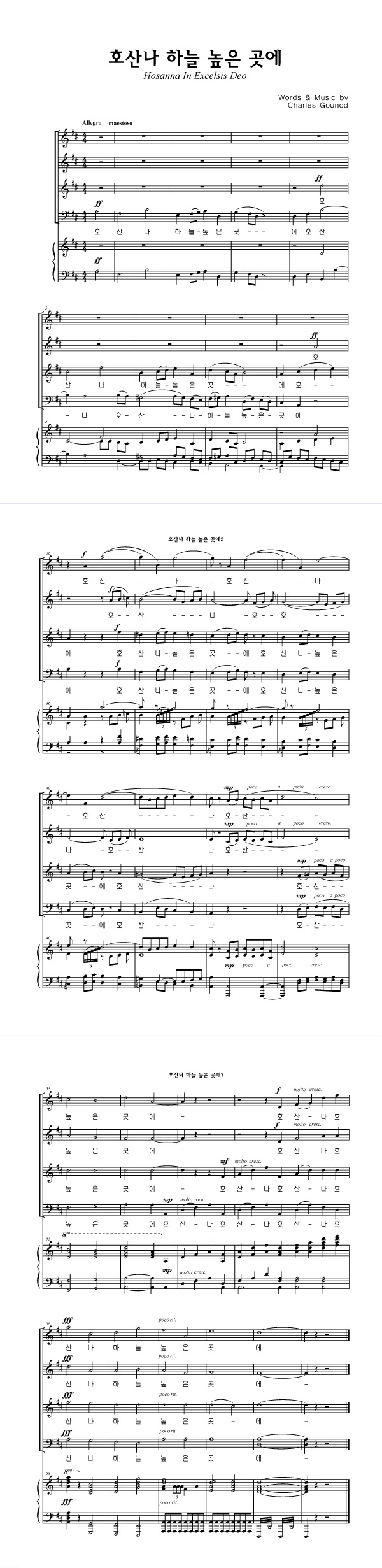 '호산나 하늘 높은 곳에' 의 다른 악보형식