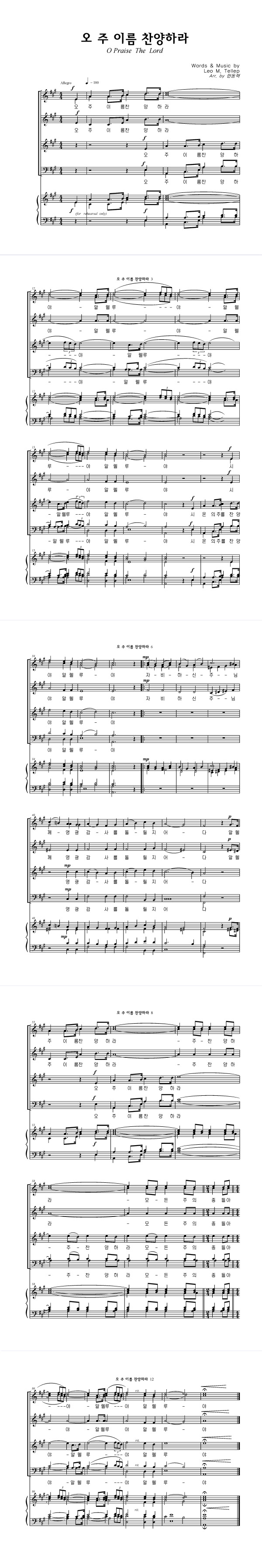'오 주 이름 찬양하라' 의 다른 악보형식