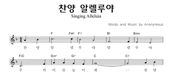 | 주를 찬양하며 | 성가 4부 + 피아노 반주 |