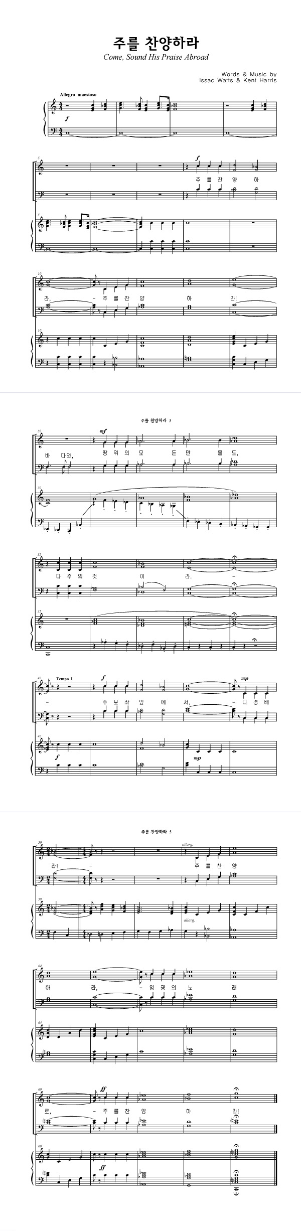 '주를 찬양하라' 의 다른 악보형식