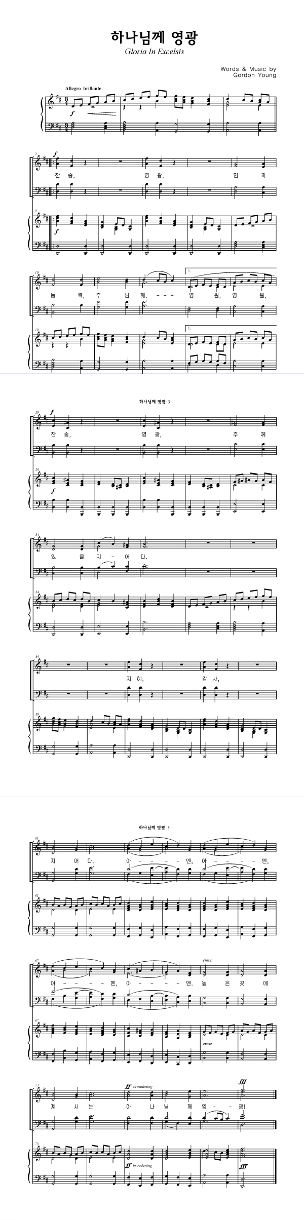 '하나님께 영광' 의 다른 악보형식
