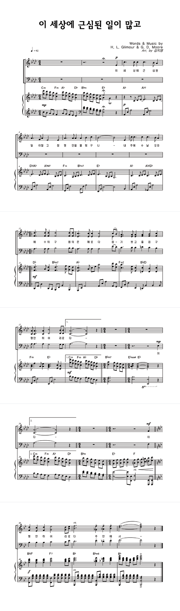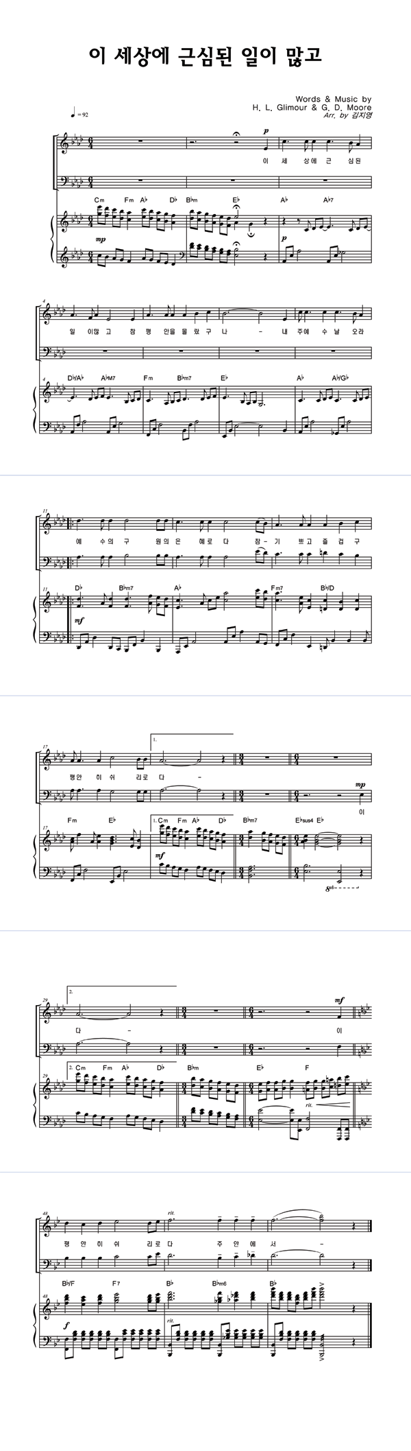 | 이 세상에 근심된 일이 많고 | 성가 2부 + 피아노 반주 |