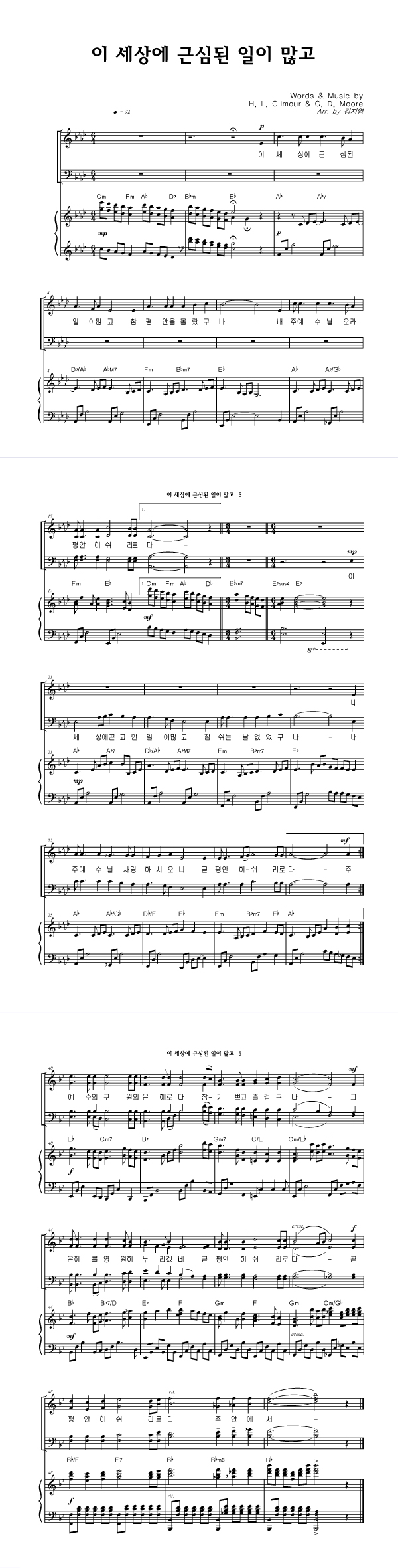 | 이 세상에 근심된 일이 많고 | 성가 3부 + 피아노 반주 |