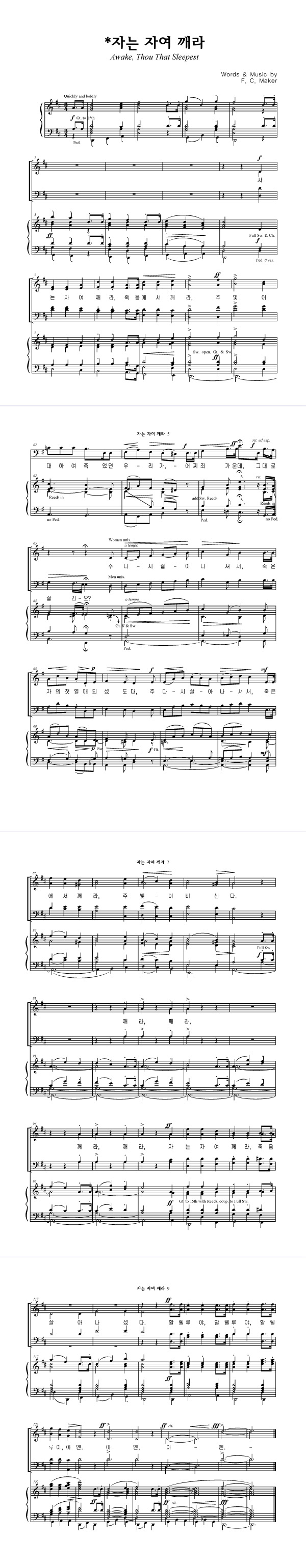 '자는 자여 깨라' 의 다른 악보형식