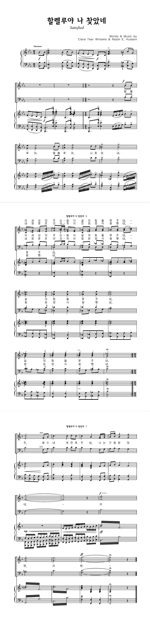 '할렐루야 나 찾았네' 의 다른 악보형식