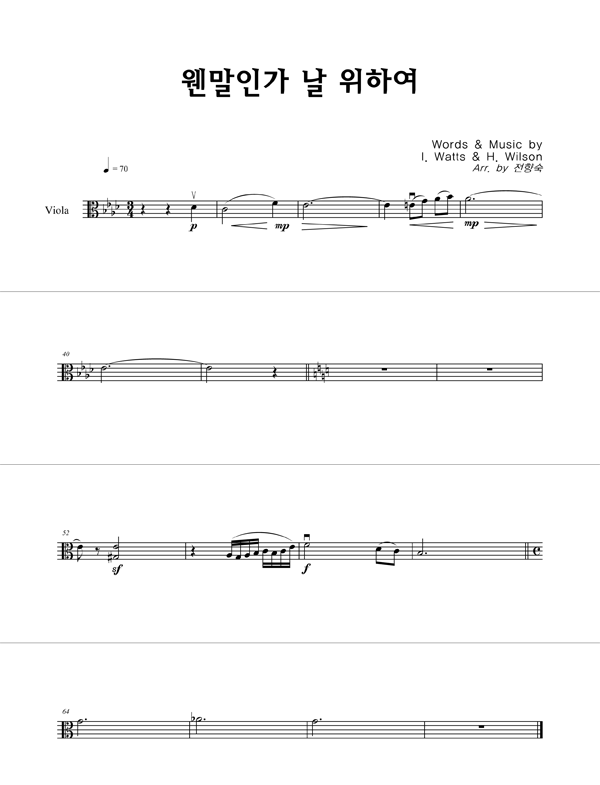 | 웬말인가 날 위하여 | 성가 2부 + 피아노 반주 |