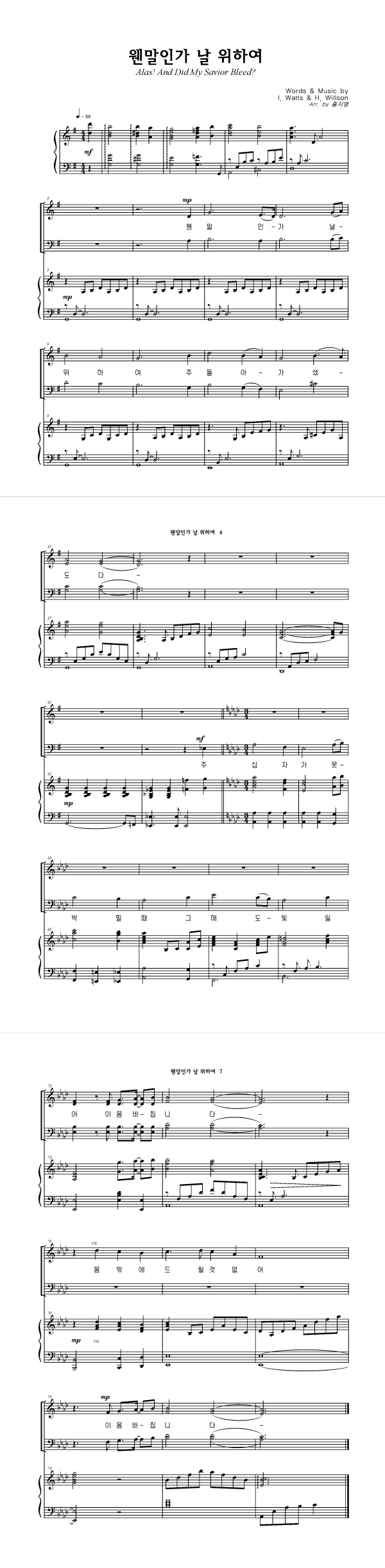 | 웬말인가 날 위하여 | 성가 4부 + 피아노 반주 |