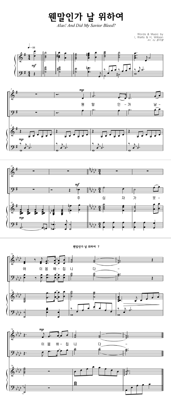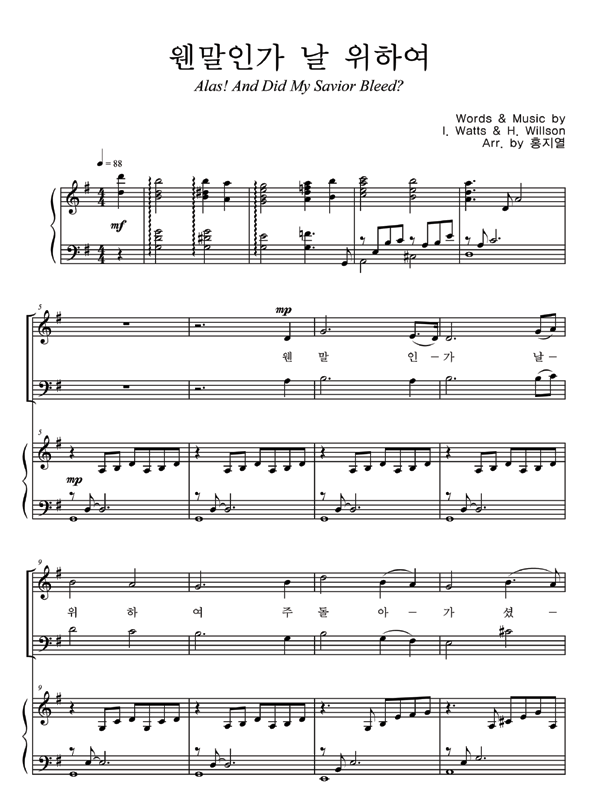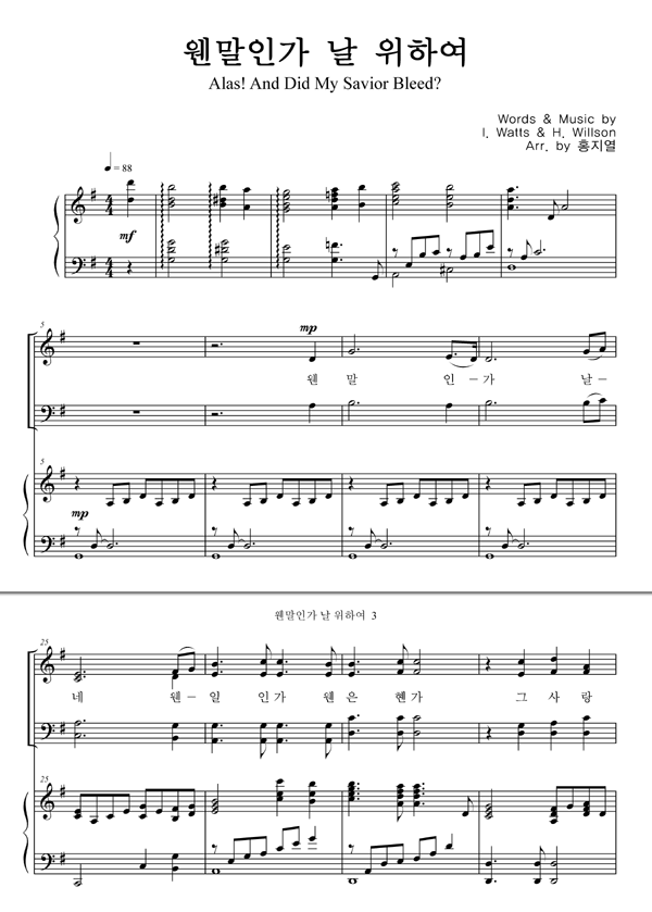 | 웬말인가 날 위하여 | 성가 2부 + 피아노 반주 |