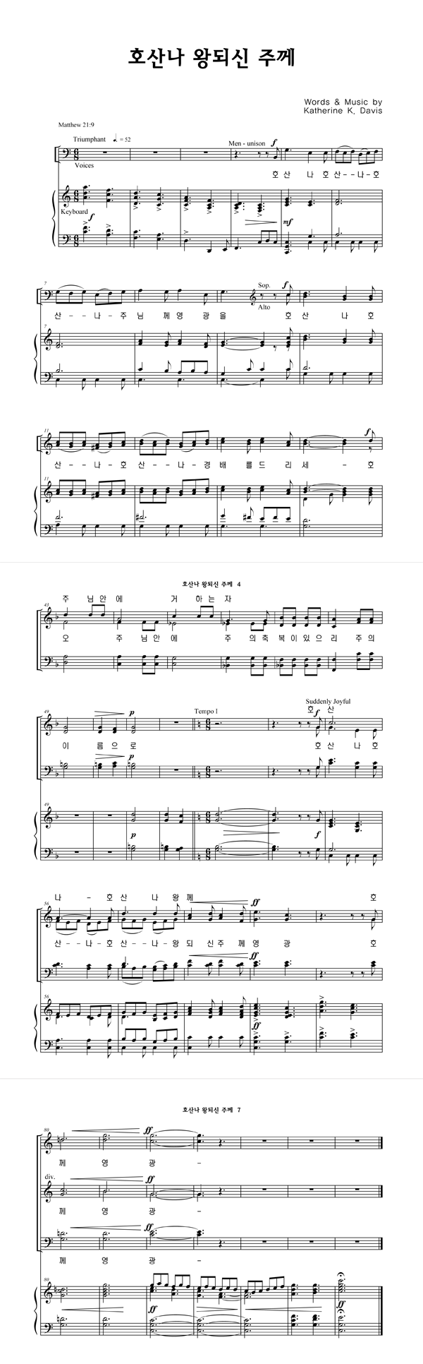 '호산나 왕되신 주께' 의 다른 악보형식