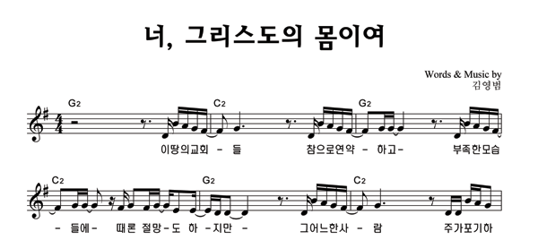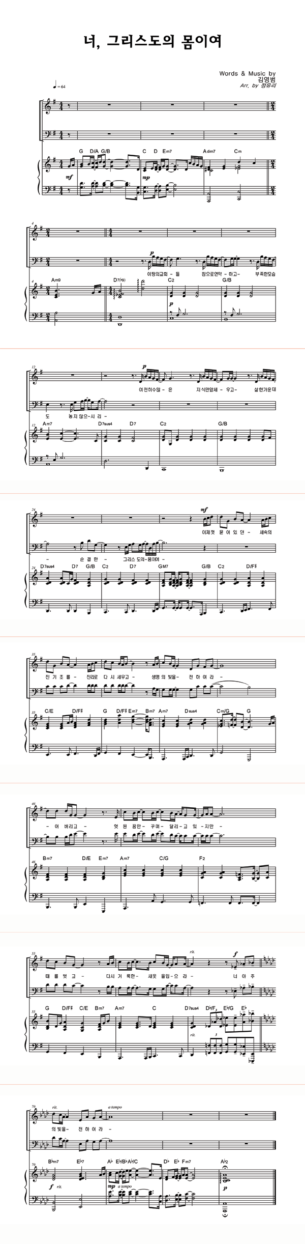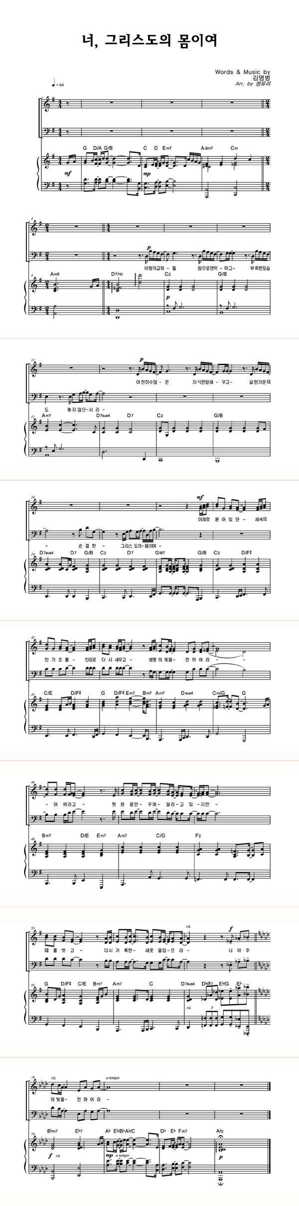 | 너, 그리스도의 몸이여 | 성가 2부 + 피아노 반주 |