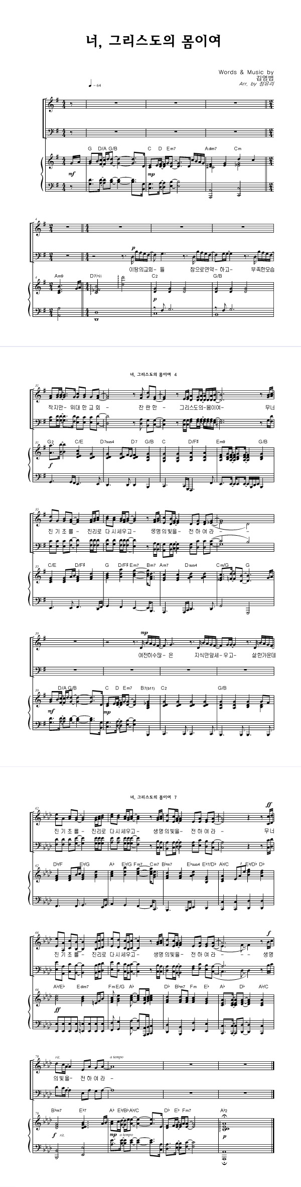 | 너, 그리스도의 몸이여 | 성가 4부 + 피아노 반주 |