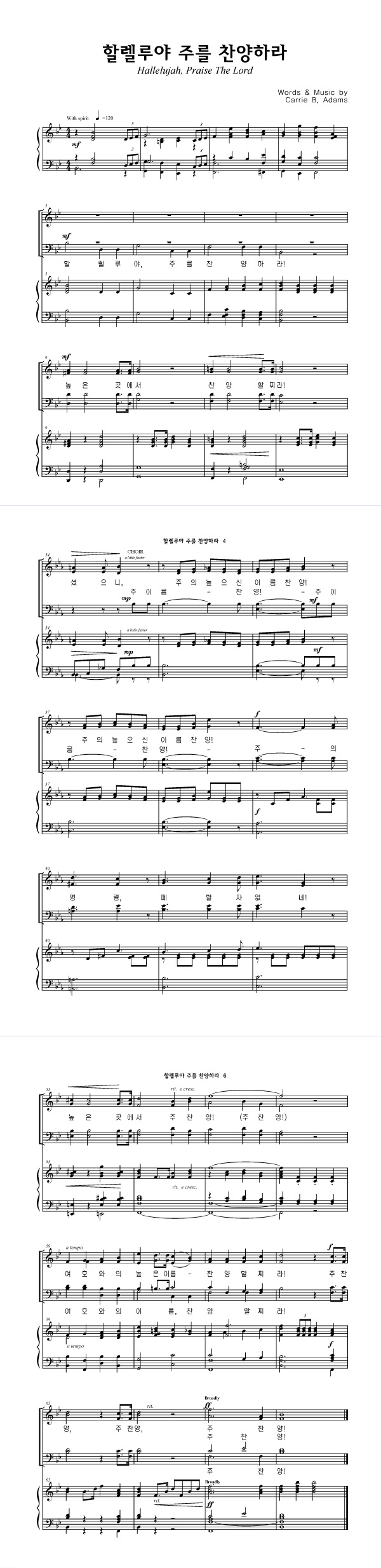 '할렐루야 주를 찬양하라' 의 다른 악보형식