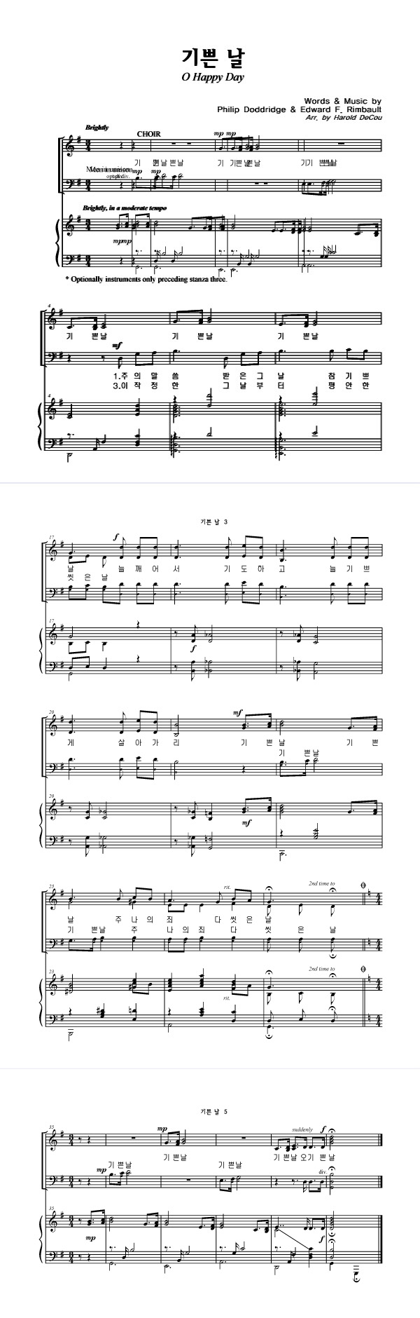 '기쁜 날' 의 다른 악보형식