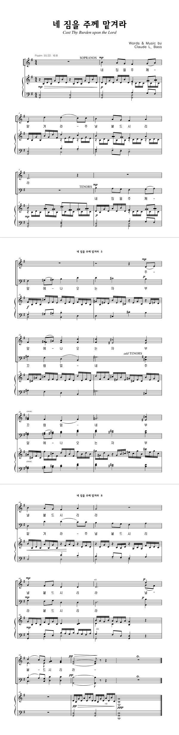 '네 짐을 주께 맡겨라' 의 다른 악보형식