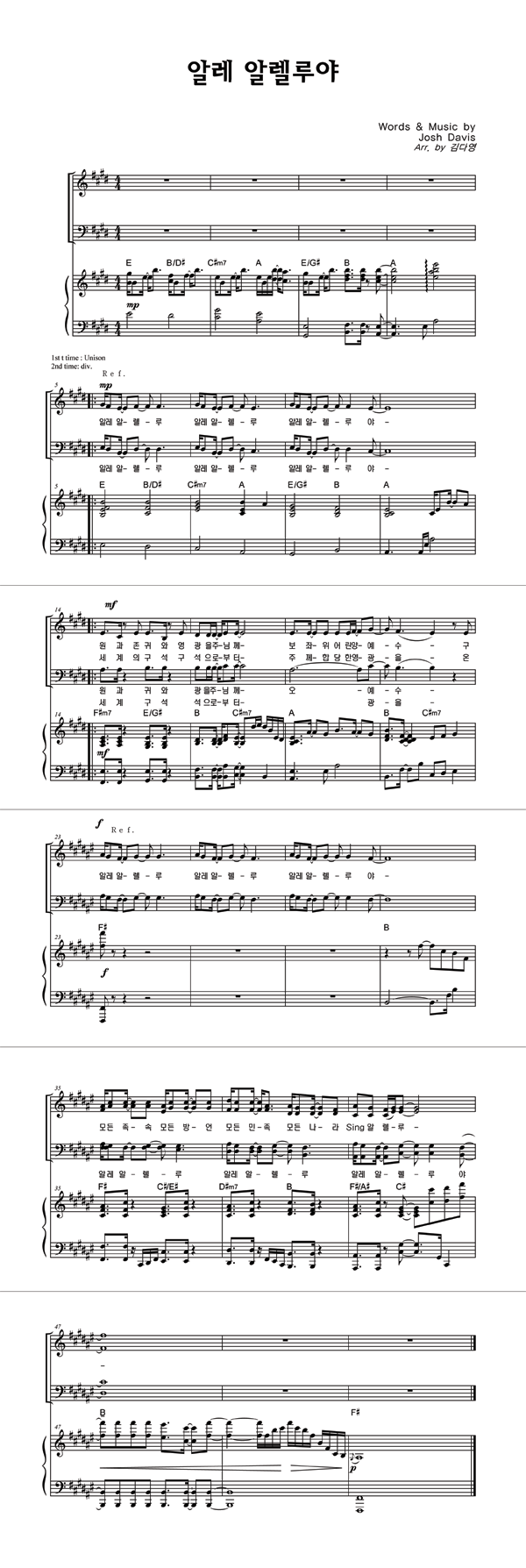 | 알레 알렐루야 | 성가 2부 + 피아노 반주 |