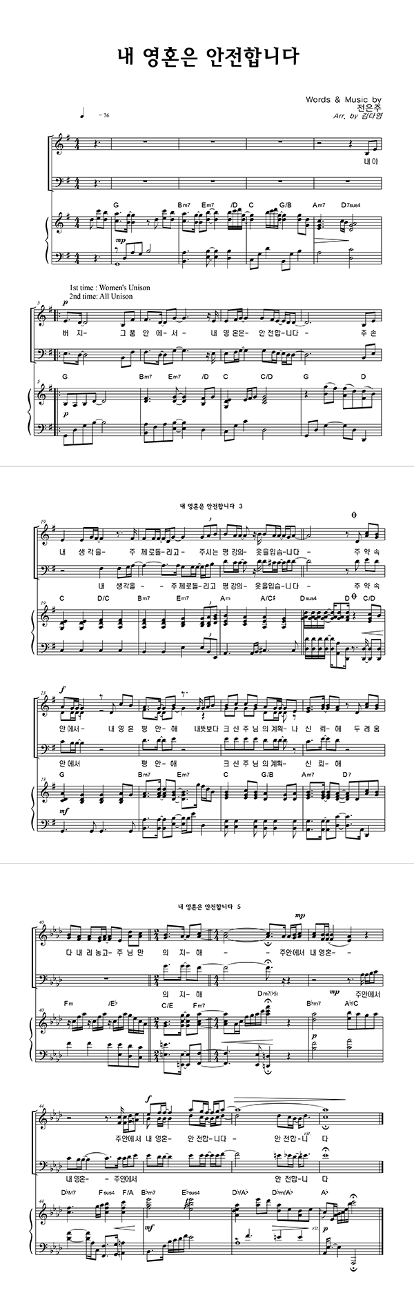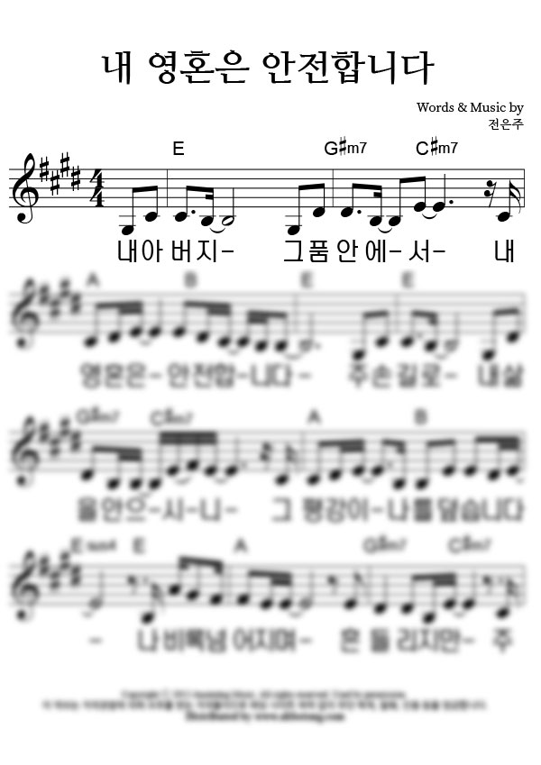 | 내 영혼은 안전합니다 | 성가 3부 + 피아노 반주 |